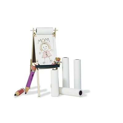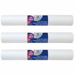 The perfect surface for young masterpieces! Stay-bright white paper that can be used on an easel, on a table or unrolled on the floor. For use with dry media. Roll has a 1″ core. Easily dispenses from standard size dispensers. Recyclable. Each roll measures 18″ x 50′. Acid free and recyclable. Sold as a pack of 3 rolls.