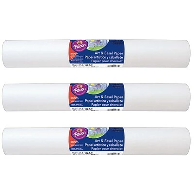 The perfect surface for young masterpieces! Stay-bright white paper that can be used on an easel, on a table or unrolled on the floor. For use with dry media. Roll has a 1″ core. Easily dispenses from standard size dispensers. Acid free and recyclable. Each roll measures 18″ x 75′. Sold as a pack of 3 rolls.