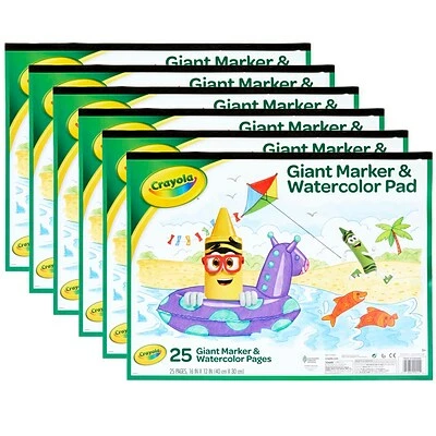 The Giant Crayola Marker & Watercolor Pad offers kids lots of big creative white space! Each pad featuring twenty-five 12″ x 16″ bright white sheets, this pad is perfect for coloring with Crayola Markers or painting with Crayola Watercolors. Sold as a pack of 6 pads.