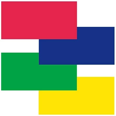 Assortment includes Flame, Royal Blue, Canary, and Apple Green